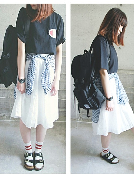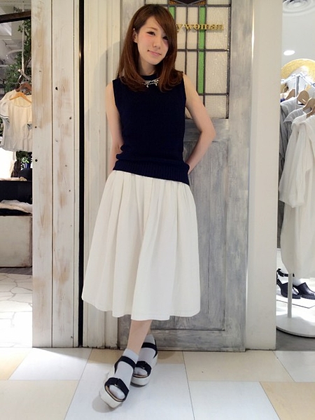 黒Tシャツにホワイトのフレアが相性抜群♩