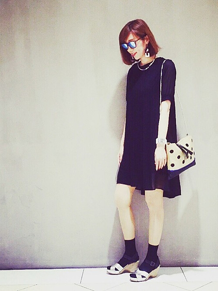 ブラックワントーンのワンピースに