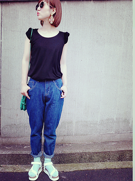 黒×デニムで