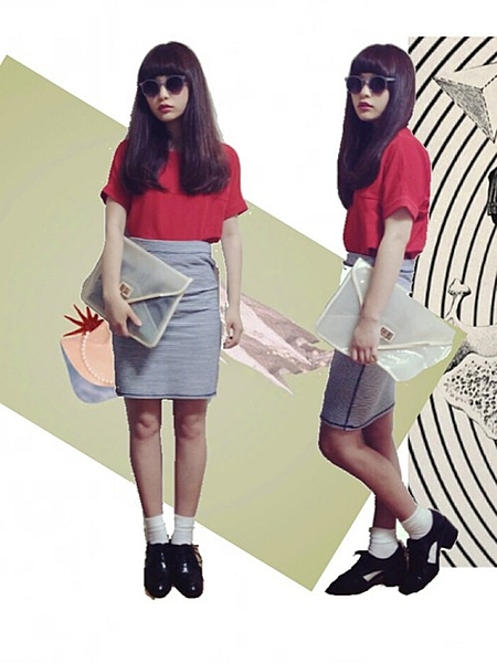タイトスカート×デッキシューズで