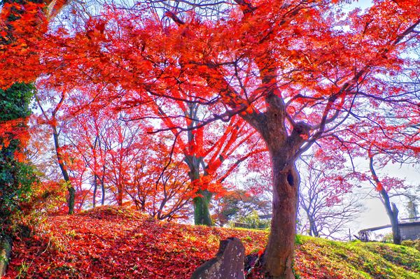葉が落ちると一面に真っ赤なカエデの絨毯が