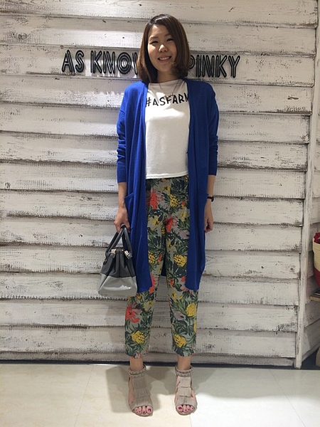 柄物にカーディガンとして