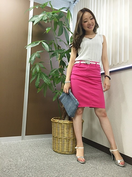 ピンクのタイトスカートは