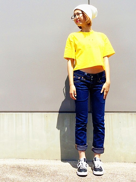 黄色のTシャツで