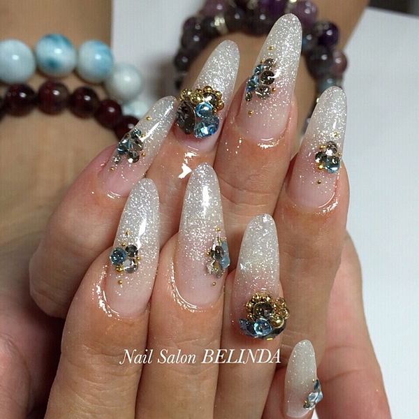 差し色なしの真っ白なネイルも豪華に作れますね。