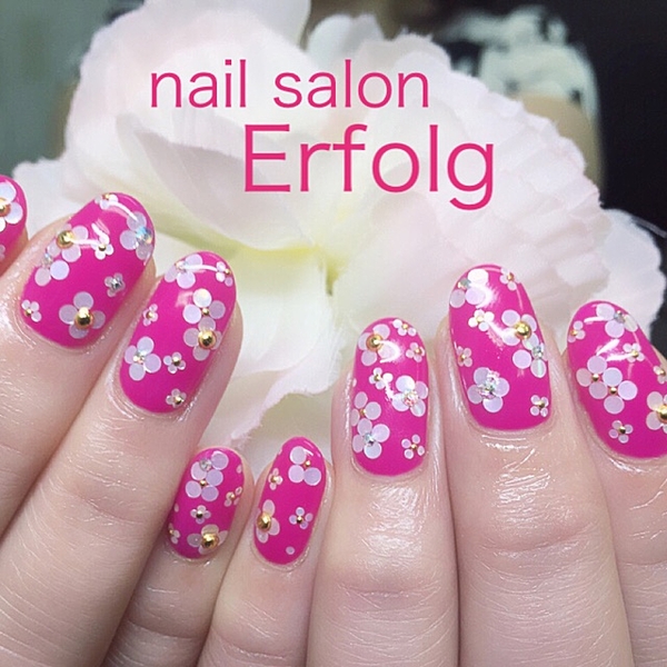 ショッキングピンクのベースカラーにホワイトの花柄がキレイ。大小のホログラムを使って動きのあるデザインに仕上がっています。