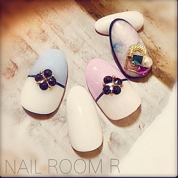 指先にをまとわせて爽やかガール。白レースネイルデザイン...