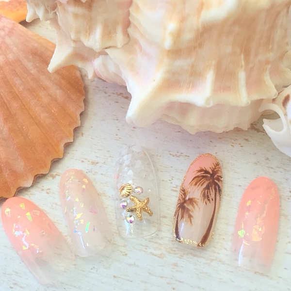 シェルネイルで魅せる♡海にぴったりのデザイン集