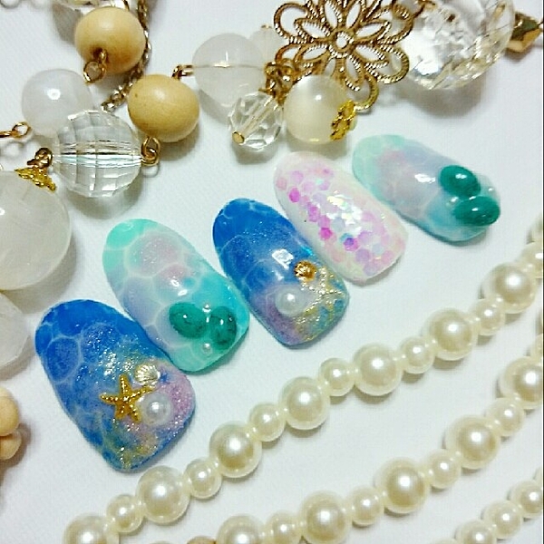ラグーンネイルもカラーを変えるとまた違った幻想的な雰囲気になります。