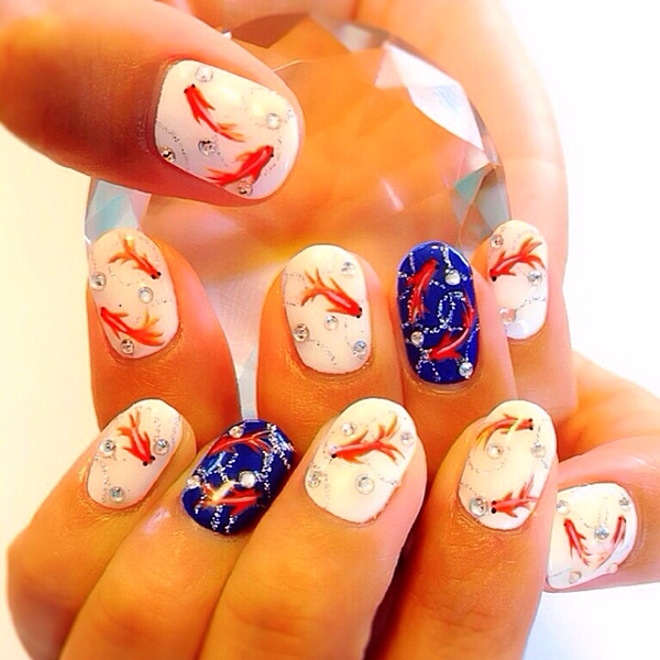 ストーンやラメが水のキラキラ感を表現していて瑞々しいデザイン。