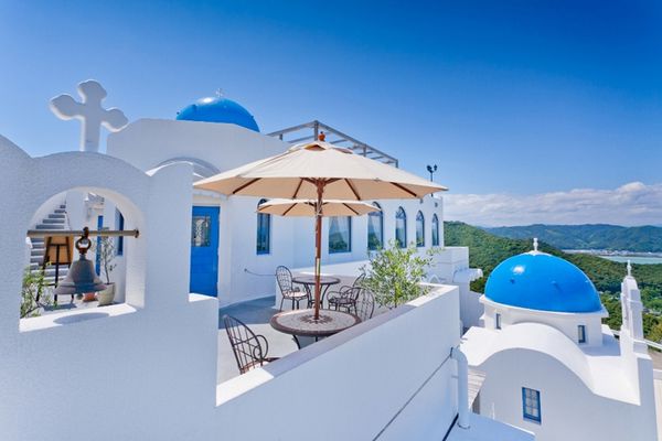 ギリシャ・サントリーニ島のような青と白の配色の建物が素敵ですよね。