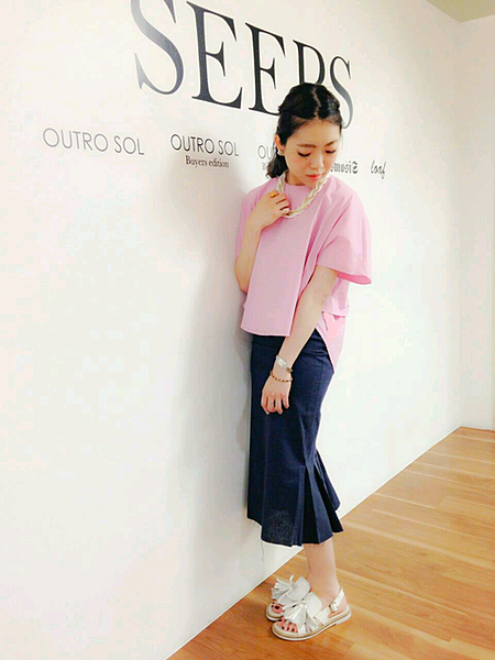 ホワイト▷ピンクに差し替えるだけ!無地Tシャツをおフェロに着こなそ♡