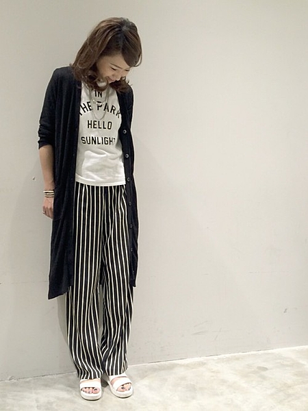 ■縦ライン意識のストライプ柄コーデ