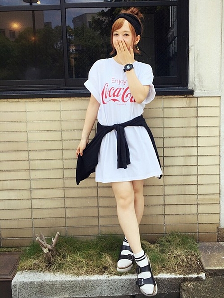 Tシャツワンピにはカーディガンで