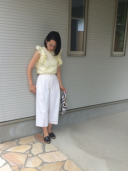 トレンドのガウチョパンツに合わせて*