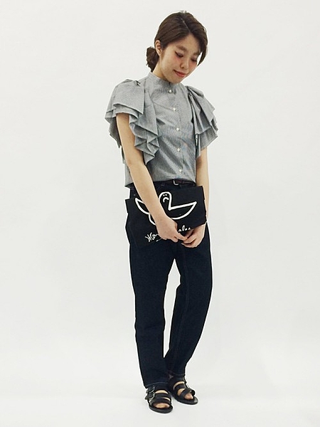 袖フリルがポイントの綺麗目ブラウスです。