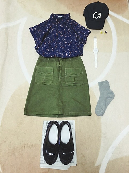 今年イチオシのカーキボトムにも小花柄は相性抜群!