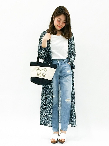 羽織るときは無地Tシャツにデニム等のラフなスタイリングがかわいい!