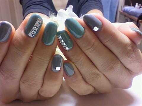 抹茶っぽいカーキにストーンをたくさんのせて♡