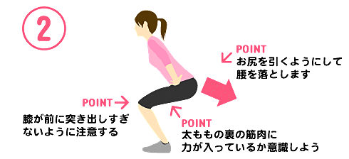 ③息を吐きながら2秒かけて、基本姿勢に戻ります。