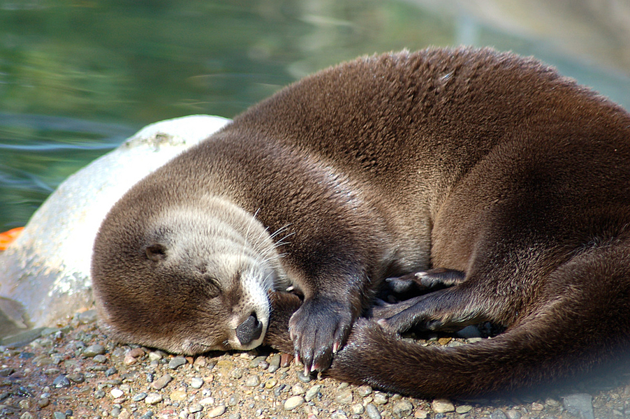 まん丸な頭がキュートなカワウソもすやすや。