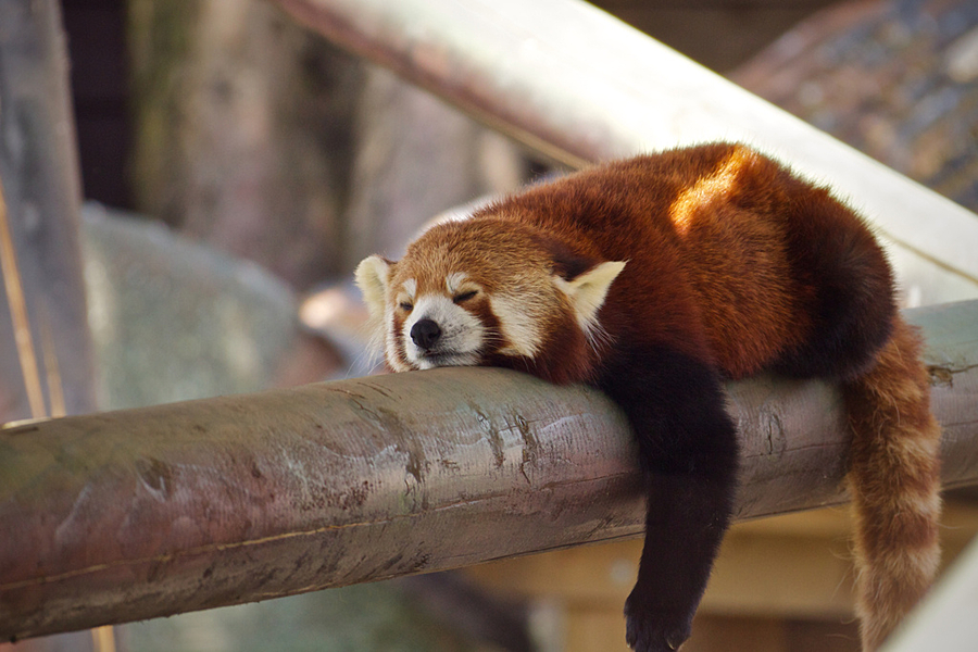 だらんと体を伸ばしたレッサーパンダ。