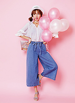 トレンドのワイドパンツ×デニムで