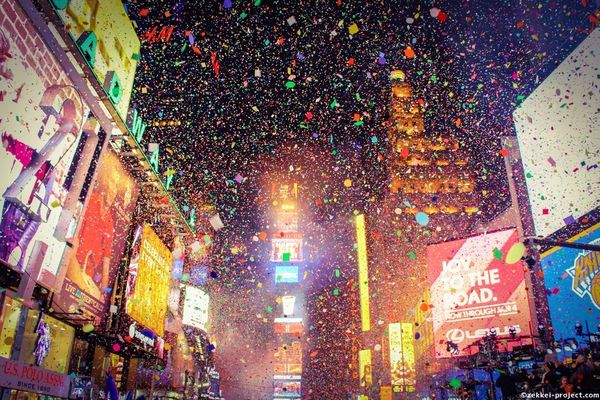 ニューイヤーを迎えた瞬間に舞い降りてくる紙吹雪は、なんと重量1トン以上もの量です。