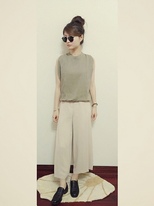 http://wear.jp/ ベージュ系でまとめたシンプルな大人コーデに高めのお団子ヘアー。海外セレブ風の「こ慣れ感」が素敵ですね!