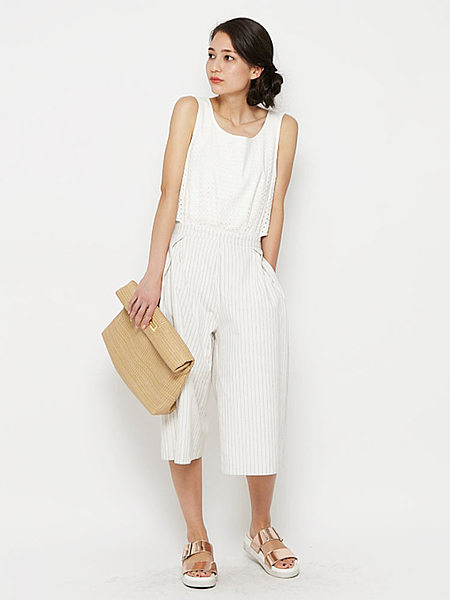 ガーリーに着るガウチョロンパースも◎