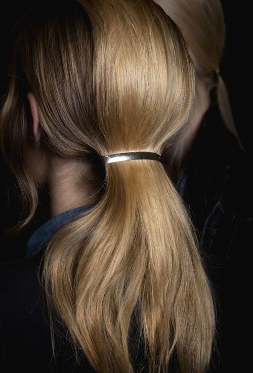 http://goo.gl/FA47XQ ローポニーテールでゆるさを上手に演出するコツは、ほどよく垂らした「後れ毛」にもアリ。前髪やこめかみ、えりあしなどから少量の毛束を垂らしましょう。