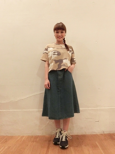 ウエストゴム仕様のミディアム丈のデニムスカートです。カジュアルな素材で履きやすく、シャツなどと合わせるときちんときた印象に。今年トレンドの注目の丈感のスカートです。