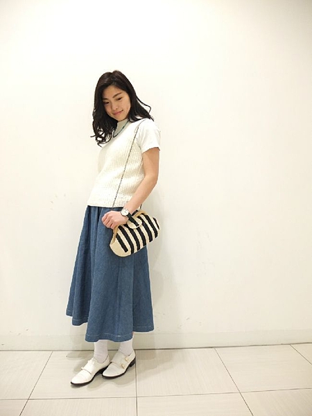 デニムフレアスカートで大人シンプルでオシャレな着こなし♡