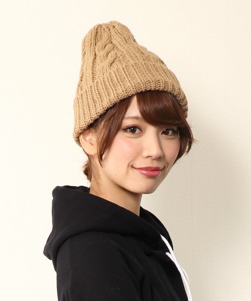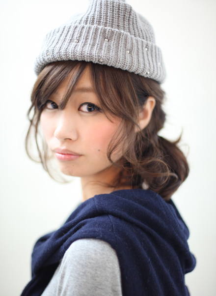 出典:http://b-h.jp 斜めにちょこんとかぶったニット帽。浅めにかぶった側の耳下にシニョンを作ったアレンジ。おくれ毛も多めに残して、柔らかく女の子らしい印象に。