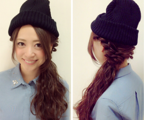 出典:http://curet.jp 編み込みで作るまとめ髪はニット帽を着脱しても崩れにくく、また、崩れてきてもラフ感がでておしゃれなので相性のいい髪型です。ニット帽の下に編み目が覗いて後ろ姿も可愛らしいですね!