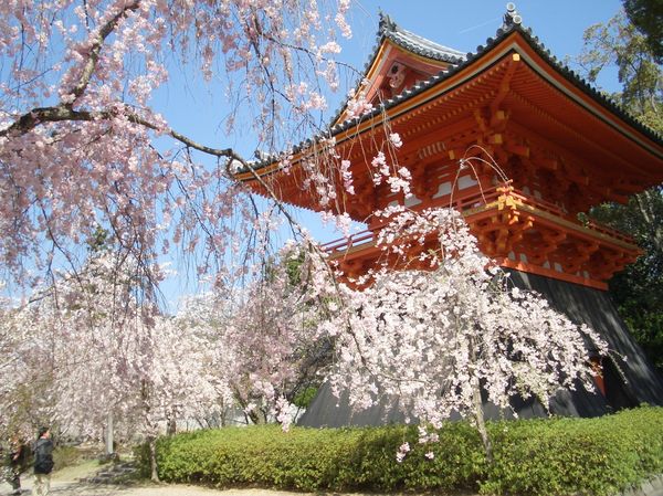 世界文化遺産の仁和寺。特に春に咲く桜はとても綺麗で人気があります。888年に建てられた歴史あるお寺となっています。