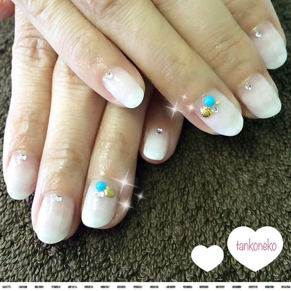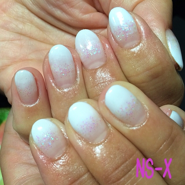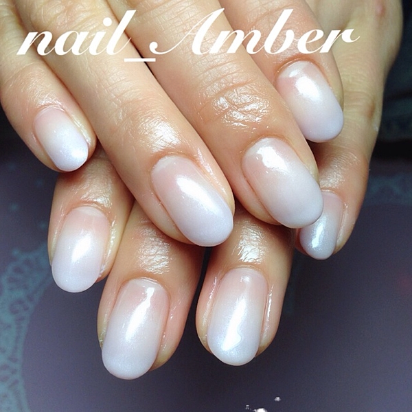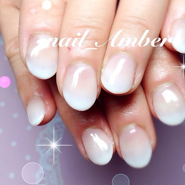 ややクリアに近いグラデーションが作れる薄めの白いネイルです。透明感を出して涼し気なイメージになりそう!