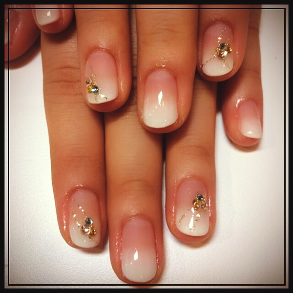 白グラデーションネイルで落ち着いた清楚な女子をアピールしちゃいましょう!白グラデーションネイルは透明感があってとっても清楚なイメージに仕上がります。白グラデーションを工夫してバリエーションも楽しみたいですね!ストーンなどを使って少しだけデコレーションして大人っぽさをプラスして女子力をアップさせちゃいましょう!