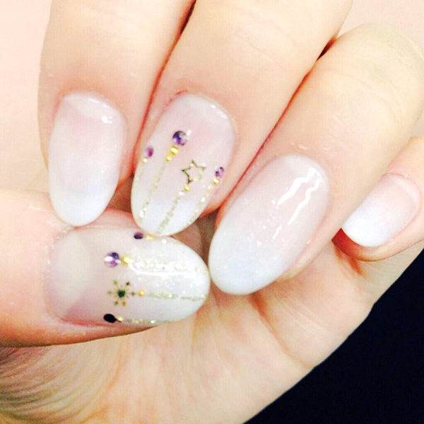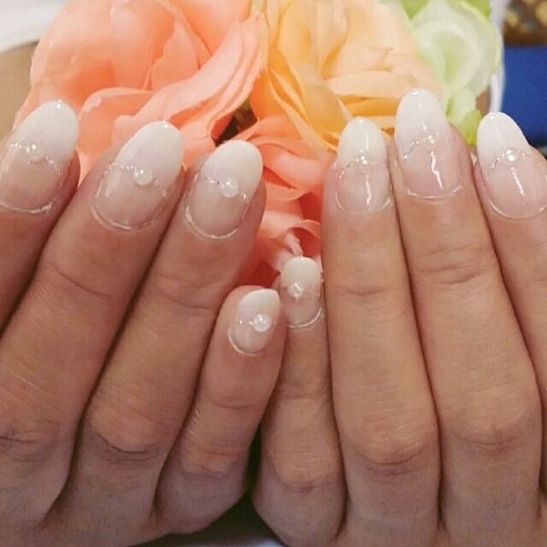 ややピンクに近い白ネイルです。グラデーションのベースとしてもメインのカラーとしても使えそうですね。