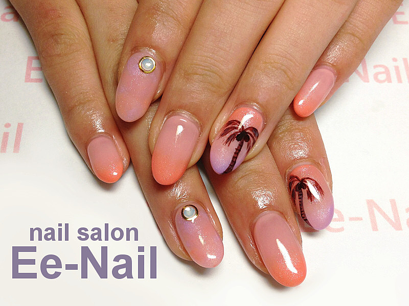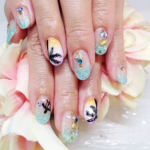 サンセットをイメージしたヤシの木ネイルが素敵♡