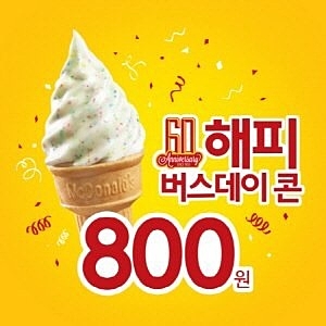 韓国のマクドナルドでは創立60周年を記念して、とっても可愛いカラフルなアイスクリームを期間限定で発売しているんです。その名も“ハッピーバースデーコーン(해피버스데이콘)”。値段も約90円(800ウォン)でとっても安く、甘くて美味しいみたいなのでぜひ食べてみて。