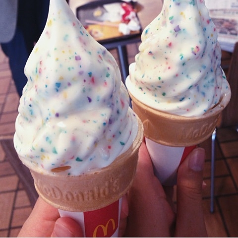 カラフルな見た目の可愛さに思わず写真を撮りたくなっちゃうような、美味しそうなアイスを見つけました!どこに売っているのか気になりますか?実はこれマクドナルドのアイスクリームなんです。