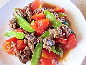 トマトの赤とさやえんどうの緑が、食卓を明るく彩ってくれます。レシピ通りに牛肉に下味を付けることで、味がぼやけませんよ!