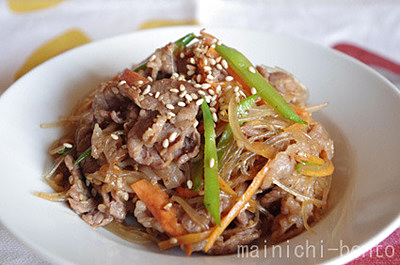 ■牛肉と絹さやのチャプチェ風