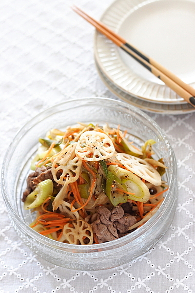 ■牛肉と根菜のさっぱり炒め