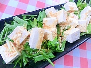 水菜と豆腐のサラダ★焼き肉のタレ&マヨネーズで