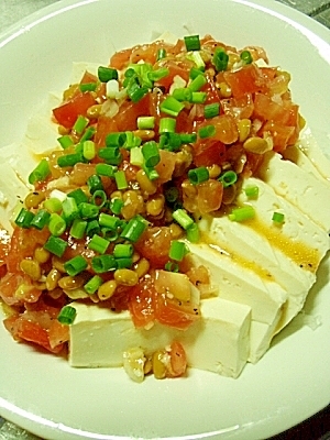 完熟トマトと納豆のソースの豆腐サラダ