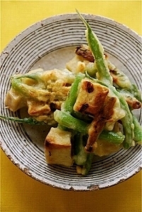 楽天レシピ:「オクラと豆腐のネバネバごまサラダ☆ 」より