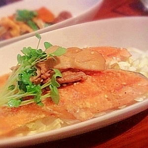 楽天レシピ:「お鍋で、鮭と白菜のホイル焼き風♬ 」より