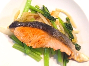 鮭と小松菜のバター醤油焼き